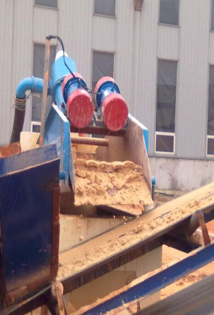 細(xì)沙回收機(jī)泵將砂水混合物輸送至泥沙分離器,離心分級濃縮的細(xì)砂經(jīng)沉砂嘴提供給振動篩,經(jīng)振動篩脫水后,細(xì)砂與水有效分離,少量細(xì)砂等經(jīng)返料箱再回到清洗槽,清洗槽液面過高時(shí),經(jīng)出料口排出。直線振動篩回收物料重量濃度為70%-85%。調(diào)節(jié)細(xì)度模數(shù)可通過改變泵轉(zhuǎn)速、改變砂漿嘗試、調(diào)節(jié)溢流水量、更換出砂嘴來實(shí)現(xiàn)。